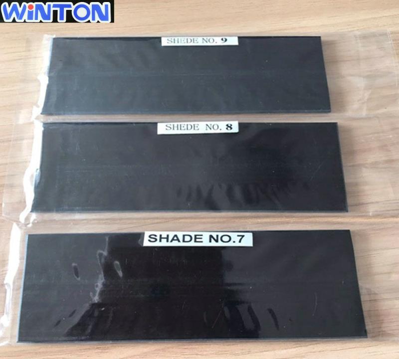 Rectangular panels are typically produced in shades 8-14 and are also available in shades 3-7. The tint of welding glass with metal oxide vacuum coating is 8-15.